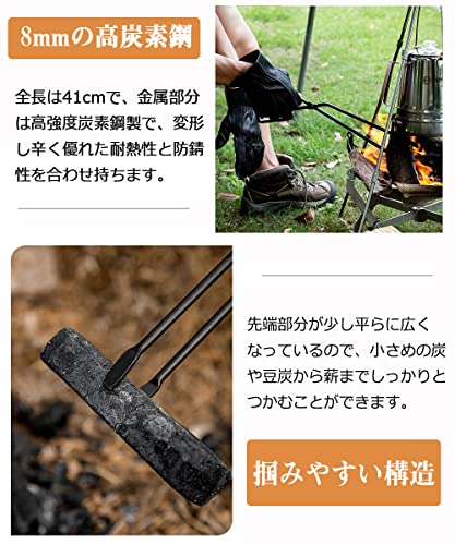 短い火バサミでは焚き火の熱によって、思うように薪や炭の位置が変えられない場合がありますが、ロングタイプならそんな心配はありません。