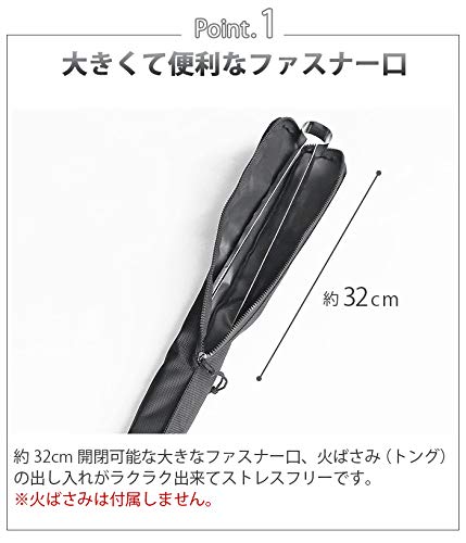 また、ファスナーは32cmあり、大きな火バサミでもストレスなく簡単に出し入れすることができるでしょう。