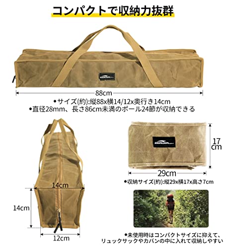 素材に天然の100%綿帆布を採用した、長さ88cmで重量620gの焚き火用品を収納するための専用ケースです。