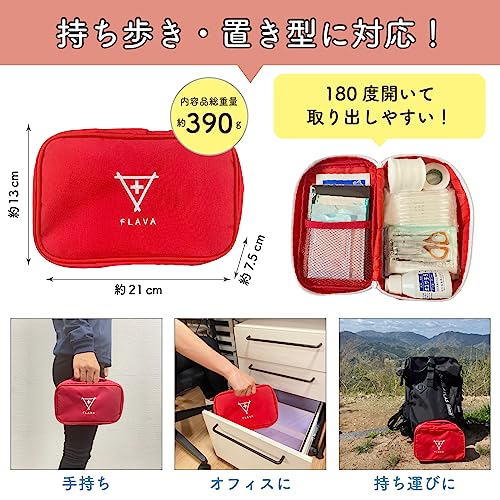 | AOYATIME 救急セットメディカルポーチ | 320g | 17.5×13.5×5.5cm | 布 | 120点 |