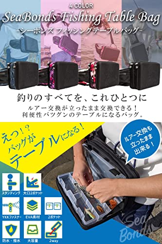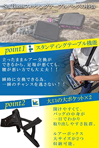 バックを開けるとテーブル状になり、立ったままルアーを交換できるショルダーバッグです。