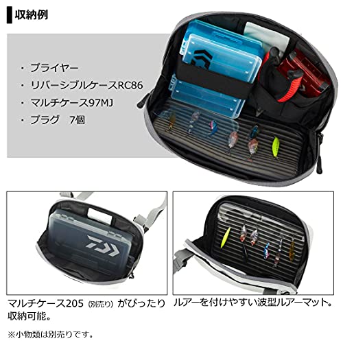内部のファスナーを自在に動かすことでリールや仕掛け、小物をまとめて持ち運ぶことができます。