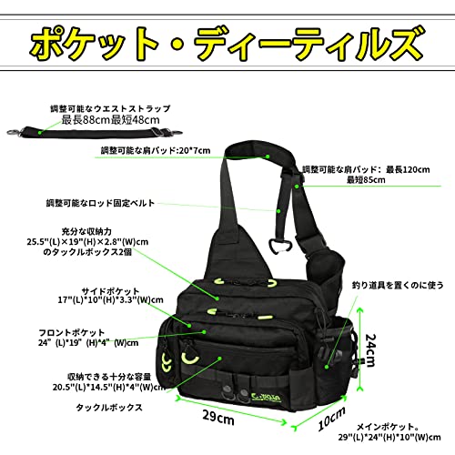 最近は大容量の釣り用ショルダーバッグも増え、便利な機能性も充実しています。