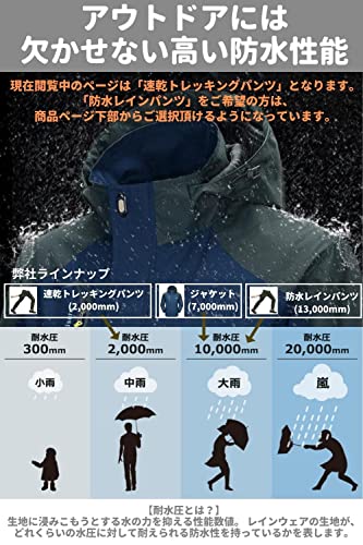 耐久撥水加工が施されたナイロンタスラン素材にPUコーティング樹脂加工を施した表地を採用し、高い耐水圧性と透湿性を誇っています。