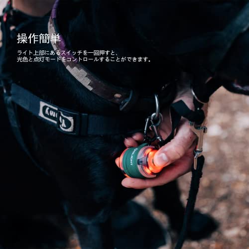 コンパクトな懐中電灯のようなデザインで、カラビナでDカンやベルトループに取り付けでき、点滅時は光の色も4色から選べます。