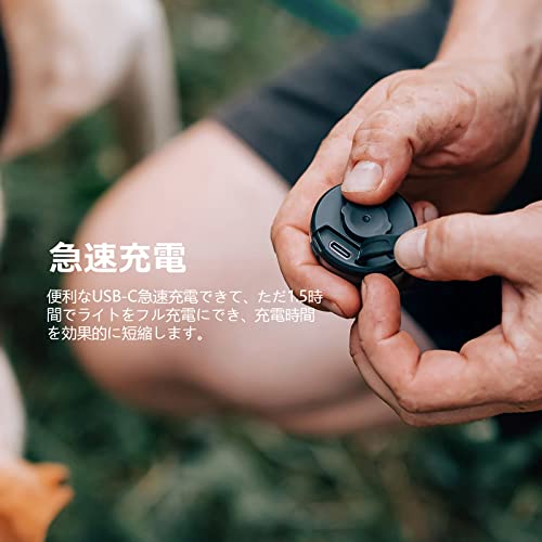 USB充電式で繰り返し使用でき、2個のライトが2つにまとまった作りなので、ひとつ外して荷物のところに置いておくような使い方も可能です。