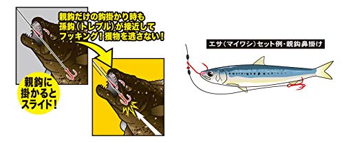 親針がスライド式になっており、ヒラメが掛かったときに孫針にもかかる仕掛けとなっています。