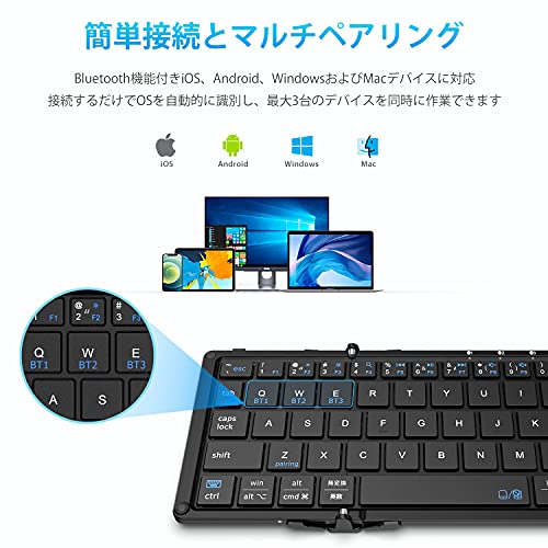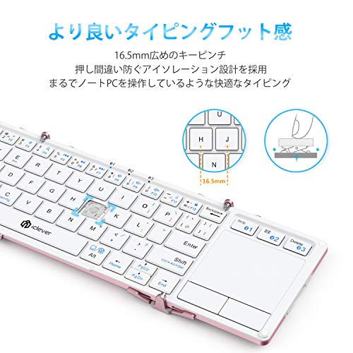 折りたたみキーボードは二つ折り・三つ折りでコンパクトに仕上げつつ、充実したキー・タッチパッドで操作性を高めています。