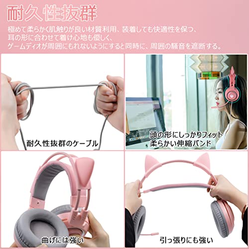 ゲーミングヘッドセット 猫耳ヘッドホン SC-G951S-PINK