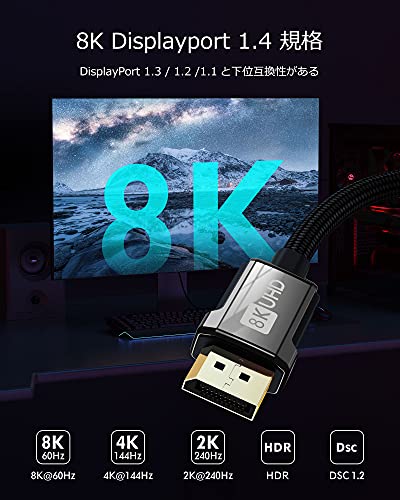 Displayport ケーブル ゲーミング DP1.4規格 240Hz