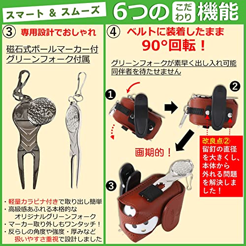 簡単にボールを取り出すことができ、ベルトに装着したまま90度回転もするので、ティーやフォークも取り出しやすくなっています。