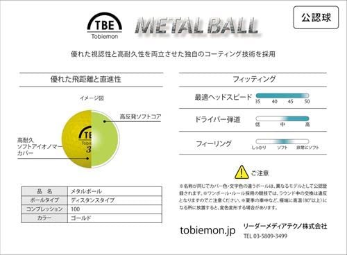 飛衛門の2ピース構造のディスタンス系の金色ゴルフボールです。