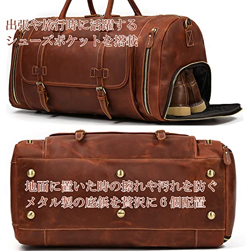 重厚感のある牛革仕様のゴルフ用ボストンバックは、40Lの大容量タイプなので旅行などの普段使いもできます。
