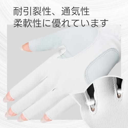 指先が開いていることでネイルをしたままでもプレーでき、グローブをつけたままスマホの操作なども可能です。