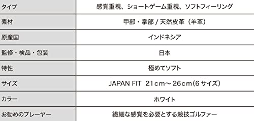 フィット感のある高品質素材の羊革のカブレッタレザーを使用した、ツアープロが使用するゴルフグローブです。