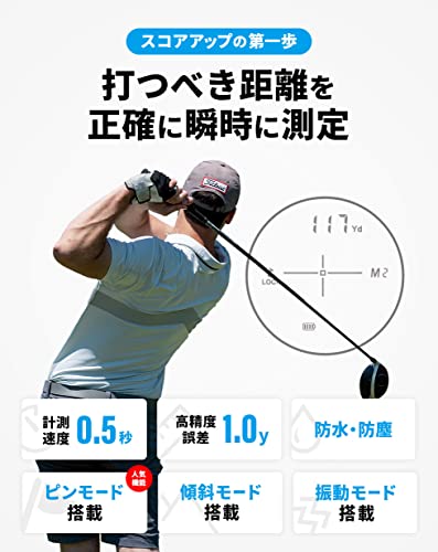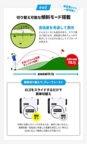 高低差を考慮した距離を表示してくれる「スロープモード」も付いており、アップダウンで番手に悩む際にも便利です。