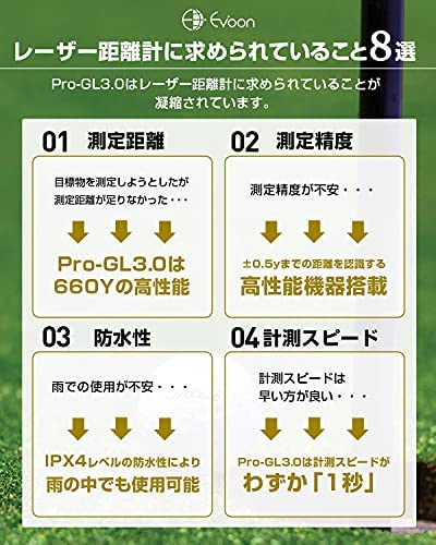 660ヤードまでの計測が可能で、誤差は0.55ヤードとなっています。