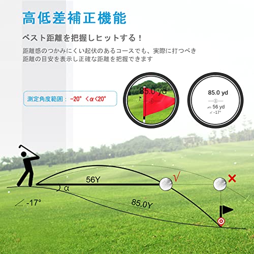 誤差0.5ヤードと高精度で、最大計測距離は700ヤードとなり、メートルとヤードの切り替えもできます。