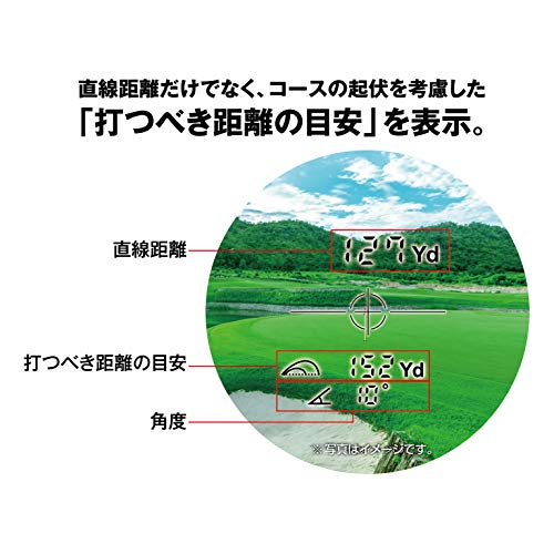 こちらはコースの起状を正確に捉え、直線距離と打つべき目安距離、角度をひと目で確認できるレーザー距離計です。