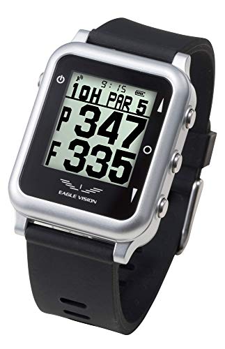 「みちびき」対応の腕時計タイプで、レイアウトや高低差、スコア入力、IPX7の防水機能付きと多機能のゴルフ距離計です。