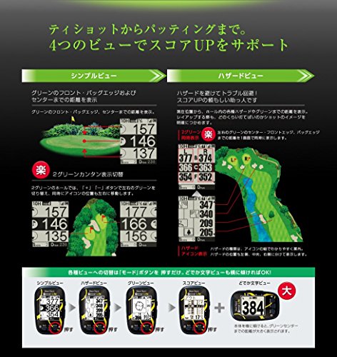 また、日本全国のゴルフ場で使用できたり、距離の表示もシンプルな物からハザードありのモードもあるのでとても便利です。