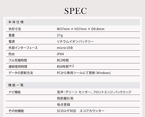 また、長時間使用できるよう、充電式バッテリーを搭載し、コースデータの更新も簡単にダウンロードすることが可能です。