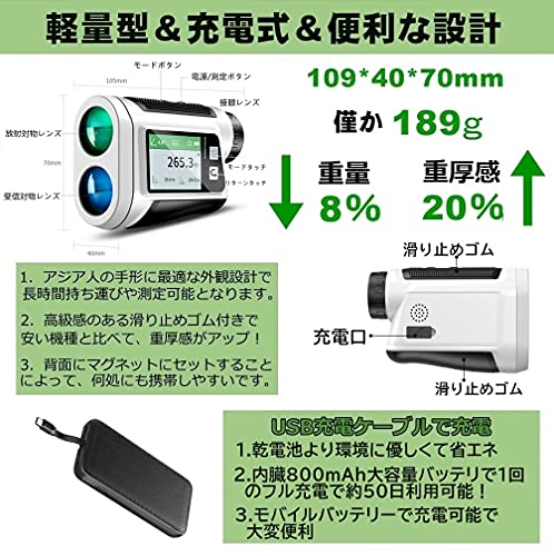 測定範囲は5m〜800mと広く、防水機能も備えているため、雨天時でも安心して使用できます。
