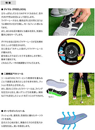 ミッドソールとアウトソールの独自の設計により、歩行時やスイング時の安定性が向上しています。