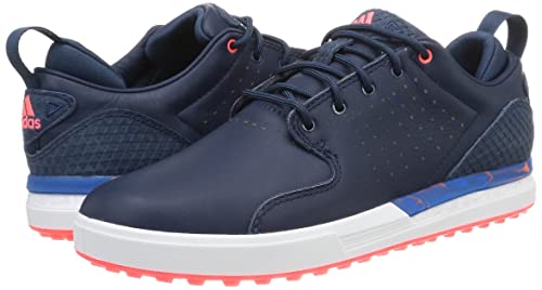デザイン面では落ち着いたネイビーと明るい白の色合いで、アディダス定番のスリーラインデザインを採用し、どのようなゴルファーにも履きやすいシンプルなデザインとして人気です。