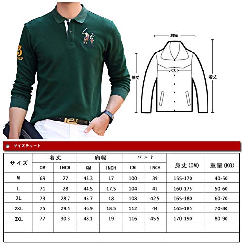 - 4.9 【ネテロ】 刺繍二重衿 8899GREEN 長袖ポロシャツ (a-B07GH5KTWT-20230705)