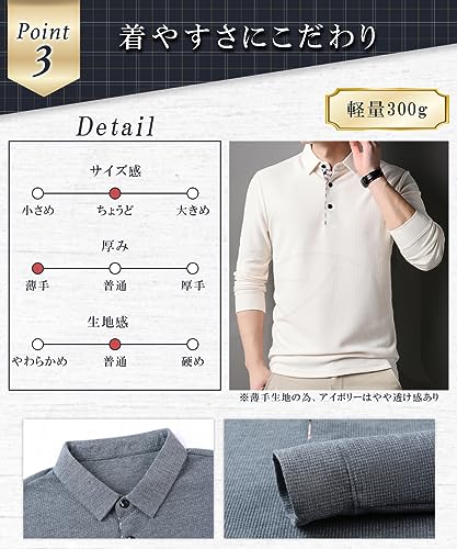 ガナタ ポロシャツ メンズ 長袖 鹿の子M/L/XL4種類ポリエステル/綿