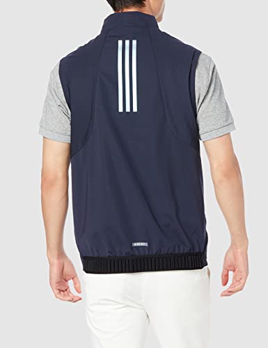 ポリエステル素材の糸で編み込まれたベストで、軽量さと通気性の良さが魅力的なゴルフウェアとなっています。