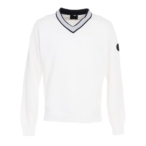 左腕に刺繍ワッペンの入った軽量且つ伸縮性に優れた、毎年人気のVネックセーターです。