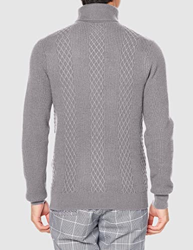 見るからに暖かそうなタートルネックのニットシャツは、アラン調の編み柄を施したおしゃれな冬用アイテムです。