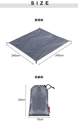 240×240グランドシートは、3〜4人で使用するのに適しており、レジャーシートや荷物置き、タープにも使用できる多機能なアイテムです。