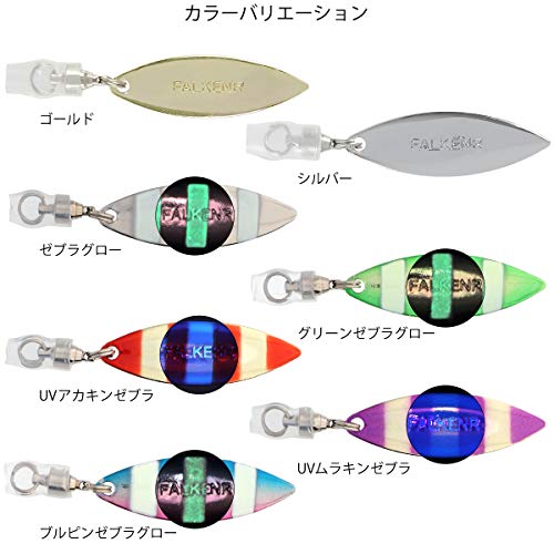 シルバーやゴールド以外にもカラーでチョイスできるタチウオジギング用にも最適なブレードです。