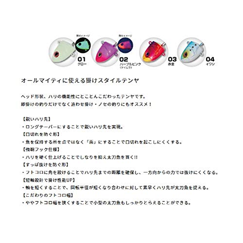 タングステン素材のヘッドを使用したタチウオ用のテンヤで、ヘッドの存在感を減少させてバイトを増やせる商品です。
