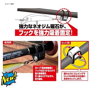 強力なネオジム磁石がルアーのフックをカチっと固定してくれるフックキーパーです。