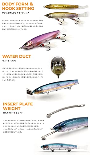 I字系のみではなく、可変アクションを可能としているルアーとなっており、スローリトリーブではI字系の動きを演出し、通常のトップウォーター同様にトゥイッチを加えることでドックウォークさせることが可能なルアーです。