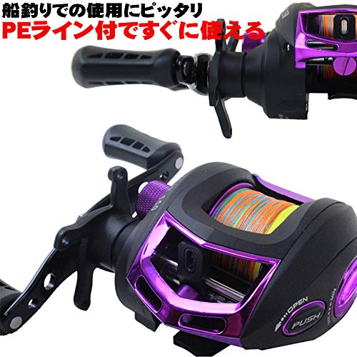 リールにはPEライン0.8号200mがセットされており、オフショアライトゲームからショアのルアーゲームにも対応します。