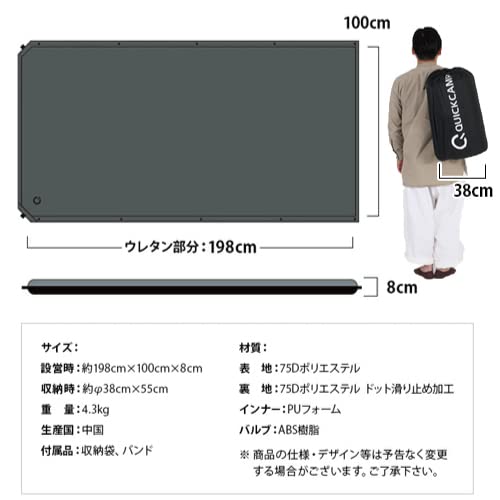 厚みは10㎝、自動膨張式で、快適な寝心地と準備が簡単なことが特徴のマットです。
