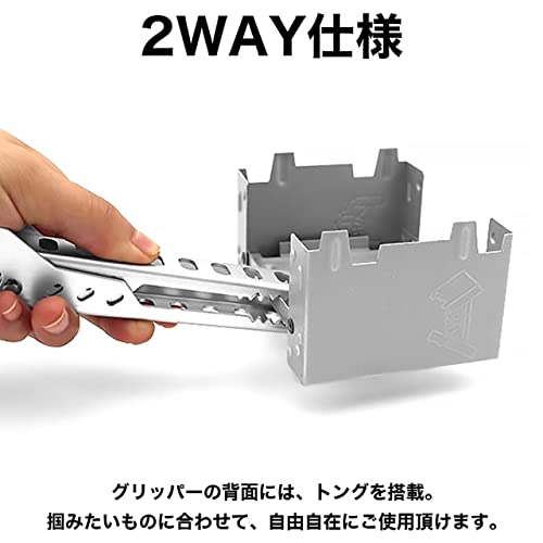 そのため、鉄板やクッカー、メスティンなどさまざまな形状のものに対応しており、これ1つで複数の調理器具をつかんで移動させることができます。