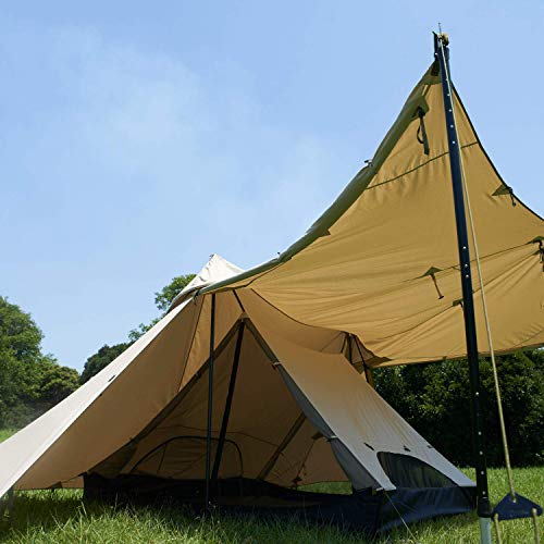 八角形の一枚布でできたタープで、4本のポールを使うとヘキサタープよりもさらに広い空間を作ることができます。