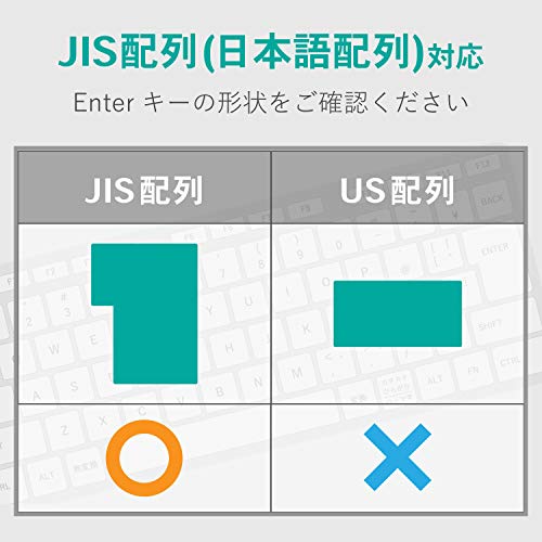 適した配列でないとキーボードカバーも合わないため、ご自身の端末の配列をチェックし、対応する配列カバーを選びましょう。