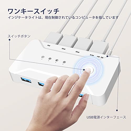 最大4台の端末に対応しつつ、4台のデバイス接続も可能であり、あらゆるデバイスを共有できる切替器です。