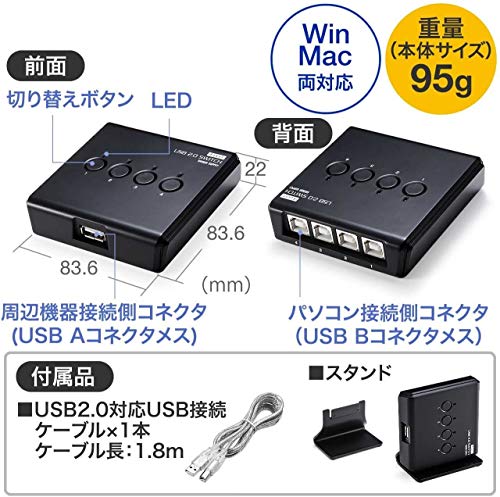 サンワダイレクト USB切替器84×84×22mm/95g412.0