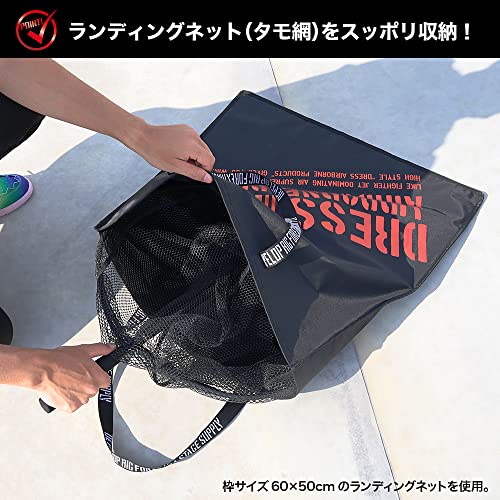 60cmのランディングネットがスッポリ収まる大型サイズで、抜群の防水性を誇る実用的なバッグです。