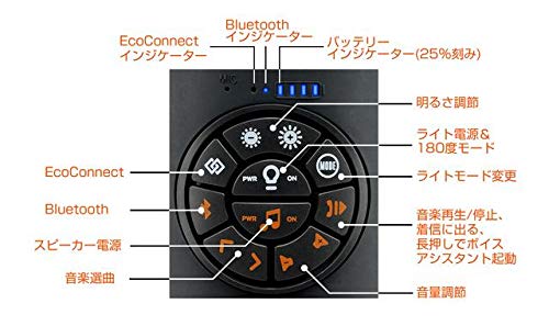 小型サイズですが、ライト最長160時間、音楽再生10時間使用可能。また、充電残量インジケーター付きのため、電池残量を確認できるのも良いポイントの一つです。