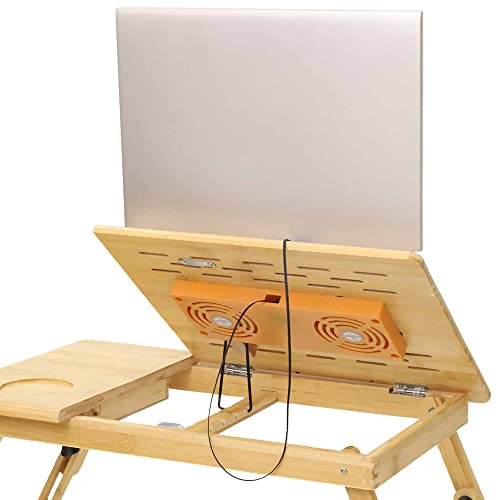竹製のノートパソコンスタンドはコンパクトですが、2つのファンで冷却もできて、機能性にも優れています。