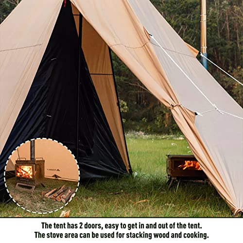 テントに3つの煙突用の穴が設置されており、冬の寒さが厳しいキャンプでも薪ストーブを2つ以上使用できます。
